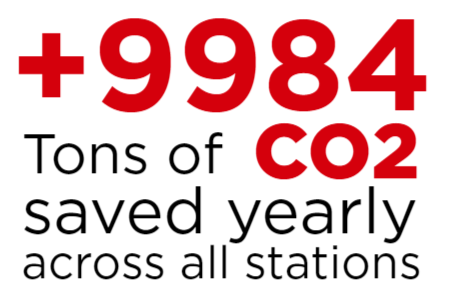 +13 tons of CO2 emissions saved monthly per station.*